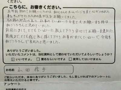 その時の対応の良さ、仕事のていねいさを見て、またお願いする時は和ごころさんと決めていました。