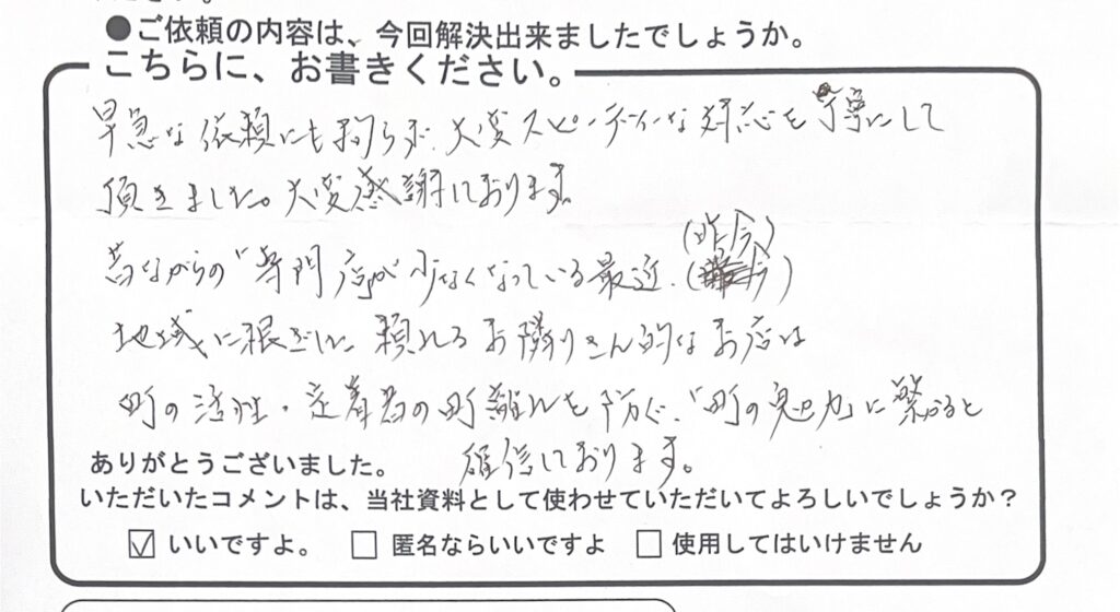 地域に根ざした頼れるお隣さん的なお店は、町の活性、定着者町離れを防ぐ「町の魅力」に繋がると確信しております。)